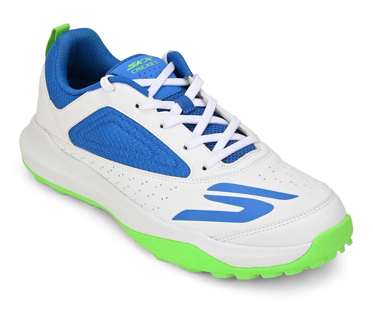 Skechers Cricket Turf Shoes are designed for players who compete on artificial turf and hard wickets, offering excellent grip, comfort, and stability throughout long matches and practice sessions. Built with a durable rubber turf outsole, these shoes provide reliable traction for quick sprints, sharp turns, and confident footwork without damaging turf surfaces. The cushioned midsole and breathable upper ensure all-day comfort, reducing fatigue during extended play, while the supportive structure helps maintain balance during batting, bowling, and fielding. Skechers cricket turf shoes are available in multiple attractive colour combinations including All White, White-Blue, White-Lime, Black-Red-White, and White-Light Blue, allowing players to choose a style that matches their kit and personal preference. Ideal for club cricketers, academies, and regular turf players, these shoes combine modern design with dependable on-field performance.